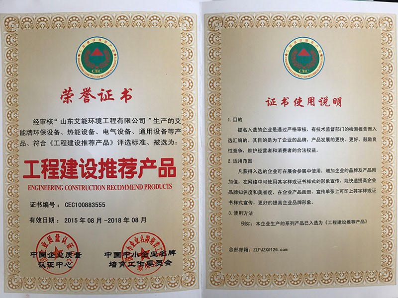 工程建設推薦產品證書